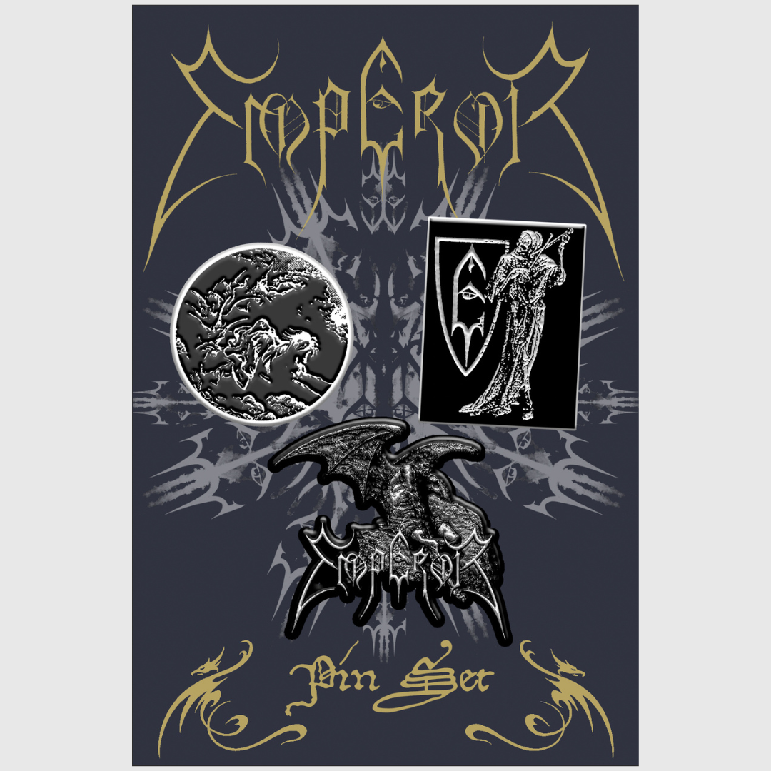 Three pins forged exclusively for the 2026 Emperial Wrath Tour, rendered in cold metal and enamel. Featuring Fallen Angel, Death on a Pale Horse, and the Icon “E”.
